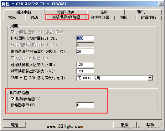 1、在硬件组态中 CPU---属性----时钟脉冲器---勾选时钟存储器---填写字节0及MB0