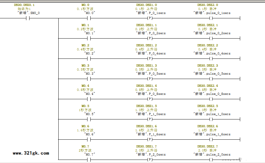 如下图所示 MB0中7个位对应的时间脉冲(此时间脉冲为方波,不是上升沿)