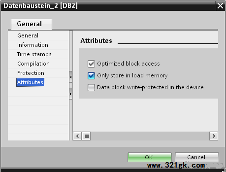 属性为“仅存储在装载内存中”的数据块(无链接的 DB)不占用控制器主存储器的任何空间,只使用 CPU 装载存储器的存储空间。因而适合存储控制器程序中不经常使用的大容量的数据。S7-1200 从固件版本 V2.0并且STEP 7 V11+SP2 开始可以使用这些DB。