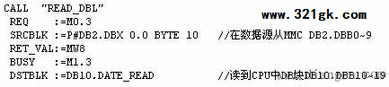 M0.3 为1 时,MMC 卡中的数据源DB2.DBB0~9 10 个字节将读到CPU DB10.DBB10~19 中,M1.3 为1,MW8 为W#16#7002 时,用户将复位M0.3。 (责任编辑:admin) |