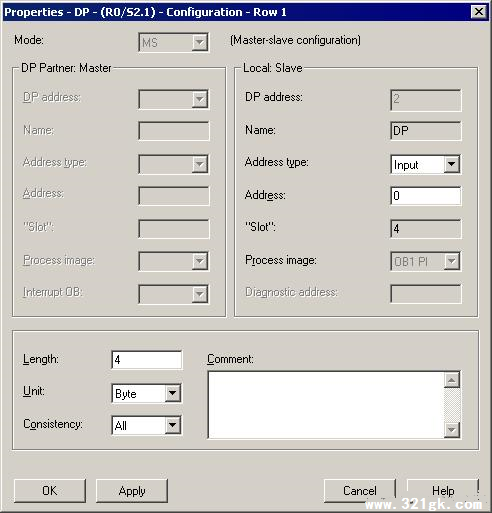 注意:通讯区域的组态中设置Consistency为ALL,且地址Address应与300 CPU I/O地址区分开,避免两者的重叠。