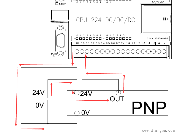 西门子PLC与NPN和PNP传感器的接线方式 1、首先了解下plc输入端的类型 西门子plc输入端源型和漏型的定义:源型、漏型是根据PLC接线端子上I点的电流流向来区分的(西门子PLC与三菱plc的定义相反,三菱PLC定义:源型、漏型是根据COM端电流流向来区分) 源型:电流从I点流出时,意为电流源头; 漏型:电流从I点流入时,意为电流流向处; 2、NPN传感器接入PLC(对于西门子PLC来说是源型输入接法) 电流走向:24V+----COM端----I0.0(电流从I点流出)----传感器out端----传感器0V端----0V,如下图:
