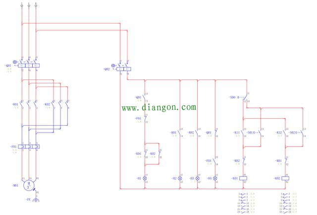 如图1所示为电机控制回路,由于图较大,缩放后可能看不是太清楚。图2给出了控制回路的详细电气连接。图3位与电机控制相关的PLC I/O点电气连接。
