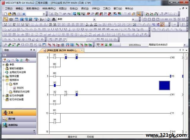 要求:1.能够正反点动电机。 2.能够选择正转,反转电机。 3.能够停止电机。 挺简单的一个正反转,能够带大家入门了解了。 我们首先分析下程序的要求,可以得知,需要输入点5个 输出点2个 分别如下分配: 输入点:X0 急停 X1正转启动 X2反转启动 X3正转点动 X4反转点动 输出点:Y0输出正转 Y1输出反转 分配好输入输出点后我们就开始我们的梯形图编写,编写完成后如下:
